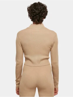 URBAN CLASSICS Damen Strickjacke Ladies Cropped Rib Knit Zip In Beige