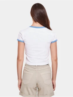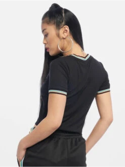URBAN CLASSICS Damen T-Shirt Short Multicolor Rib In Schwarz